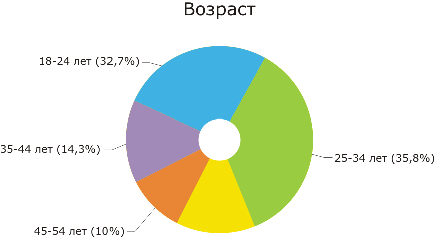 35,% аудитории – посетители в возрасте 25–34 лет;